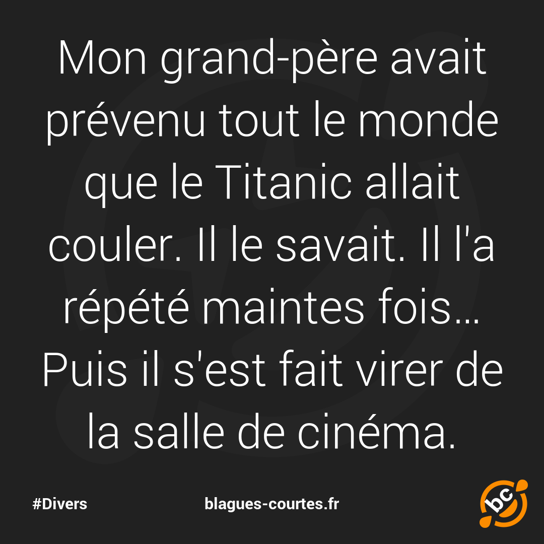 Mon grand-père avait prévenu tout le monde que le Titanic allait couler. Il le savait. Il l'a répété maintes fois… Puis il s'est fait virer de la salle de cinéma.