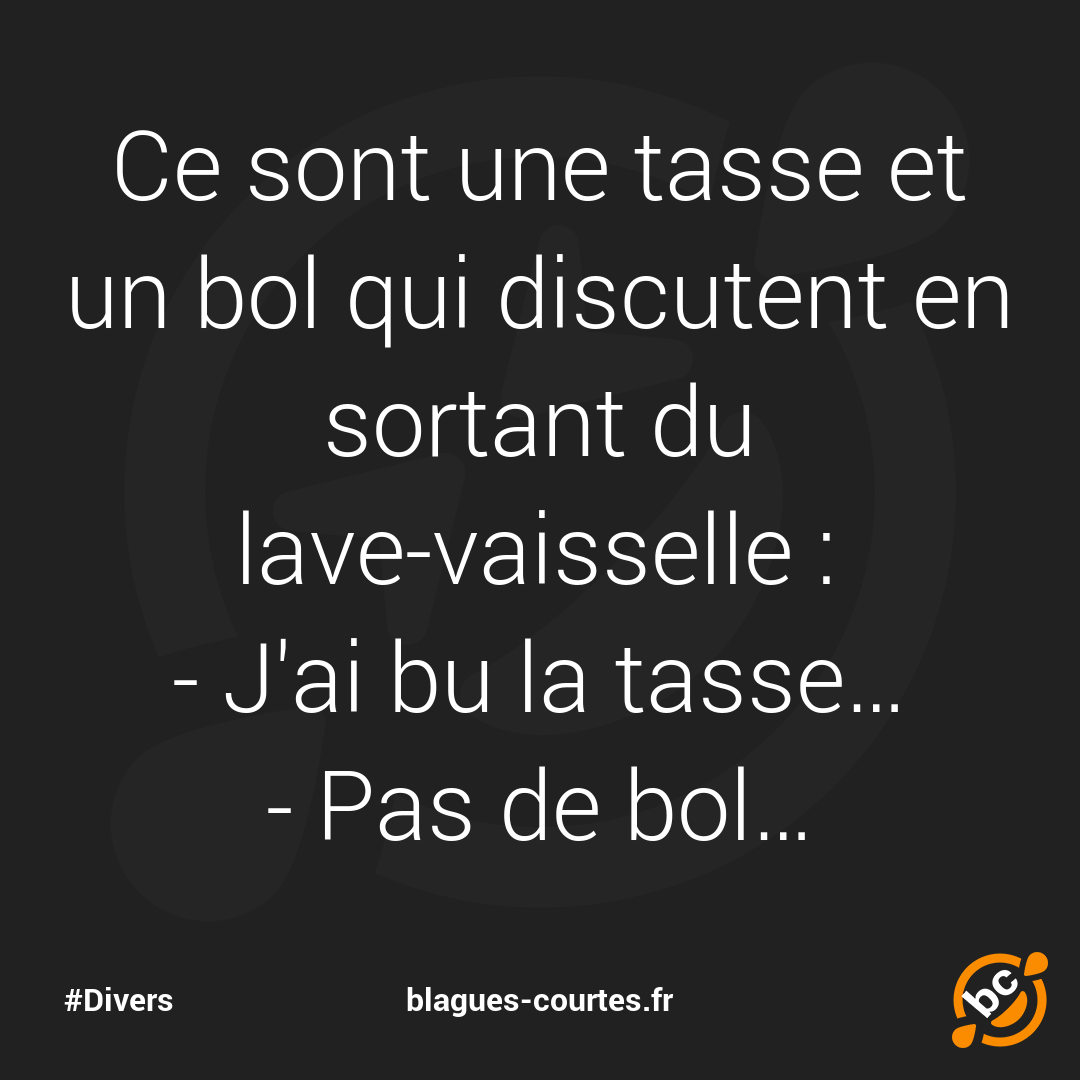 Ce sont une tasse et un bol qui discutent en sortant du lave-vaisselle :