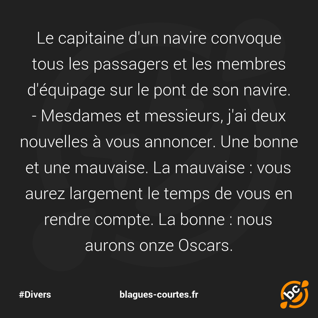 - Mesdames et messieurs, j'ai deux nouvelles à vous annoncer. Une bonne et une mauvaise. La mauvaise : vous aurez largement le temps de vous en rendre compte. La bonne : nous aurons onze Oscars.