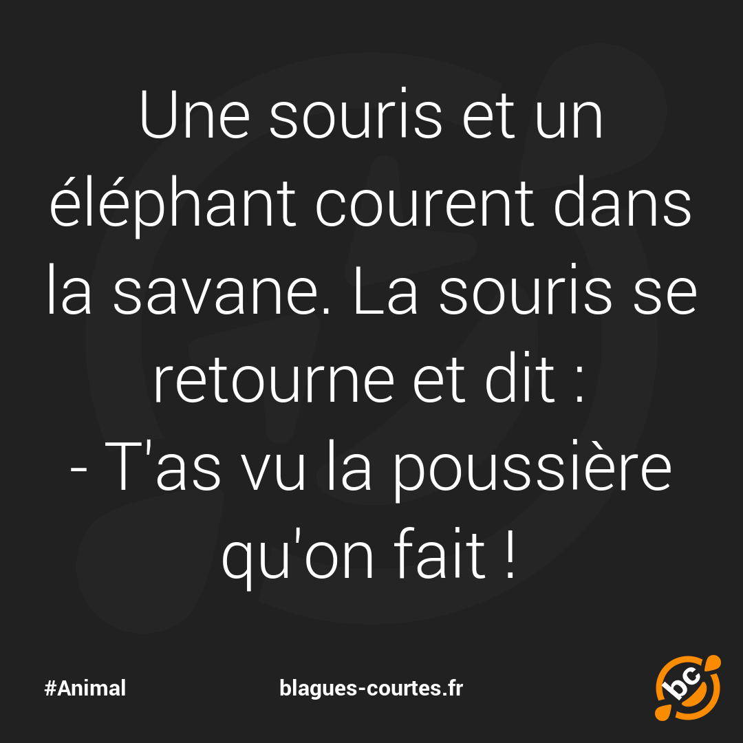 Une souris et un éléphant courent dans la savane. La souris se retourne et dit :