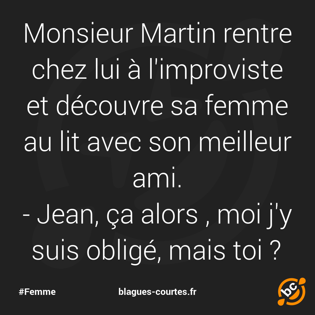 Monsieur Martin rentre chez lui à l'improviste et découvre sa femme au lit avec son meilleur ami.