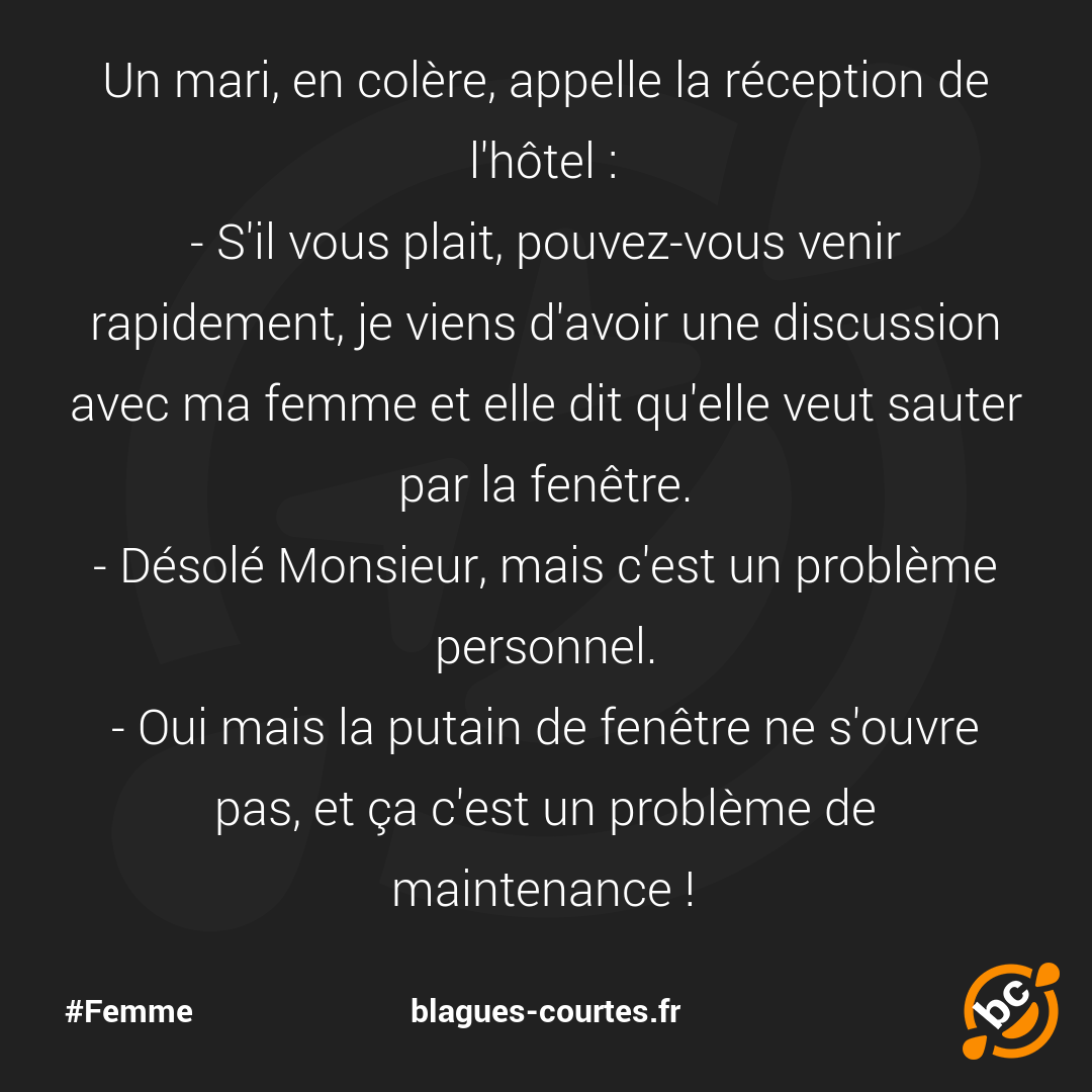 - Oui mais la putain de fenêtre ne s'ouvre pas, et ça c'est un problème de maintenance !