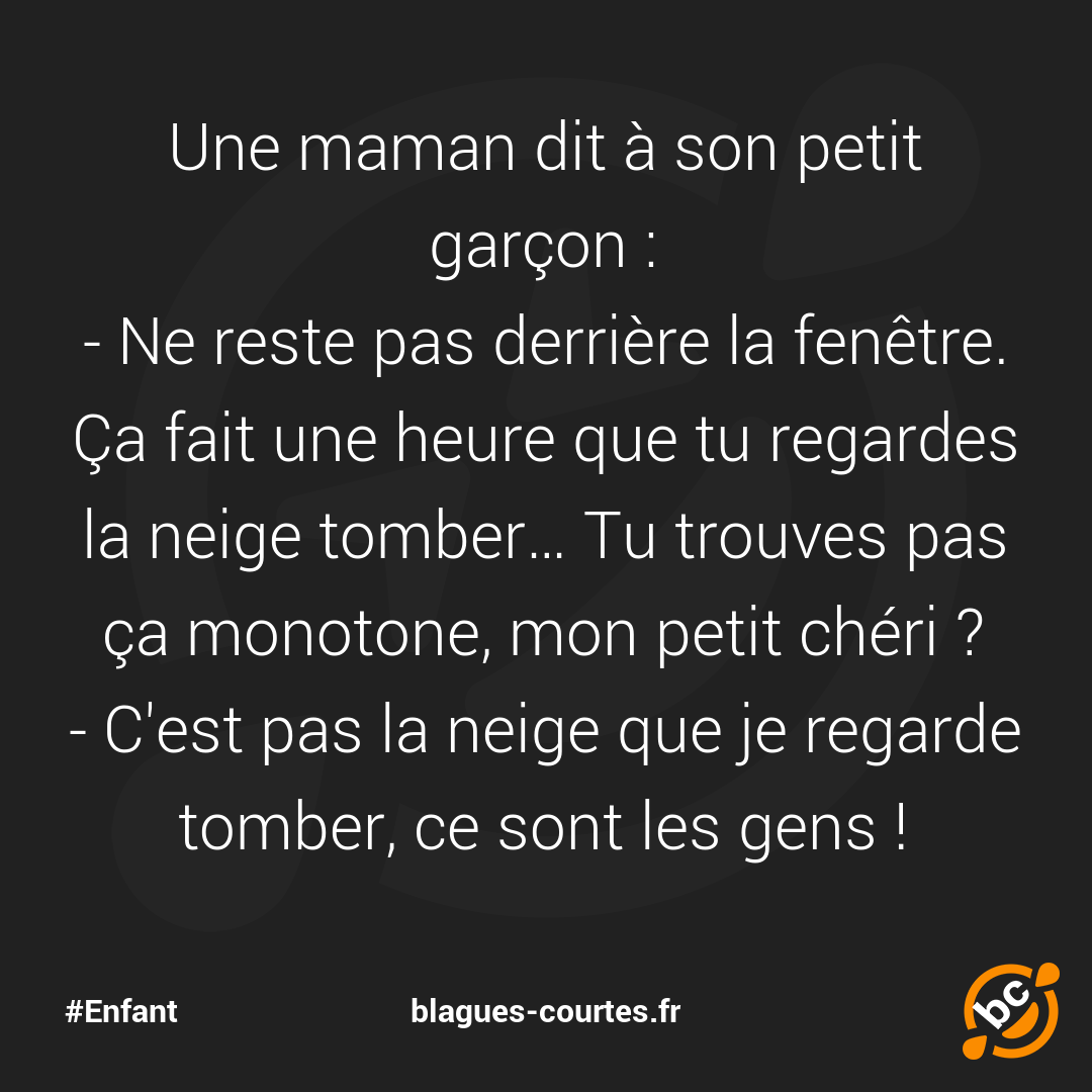 - Ne reste pas derrière la fenêtre. Ça fait une heure que tu regardes la neige tomber… Tu trouves pas ça monotone, mon petit chéri ?