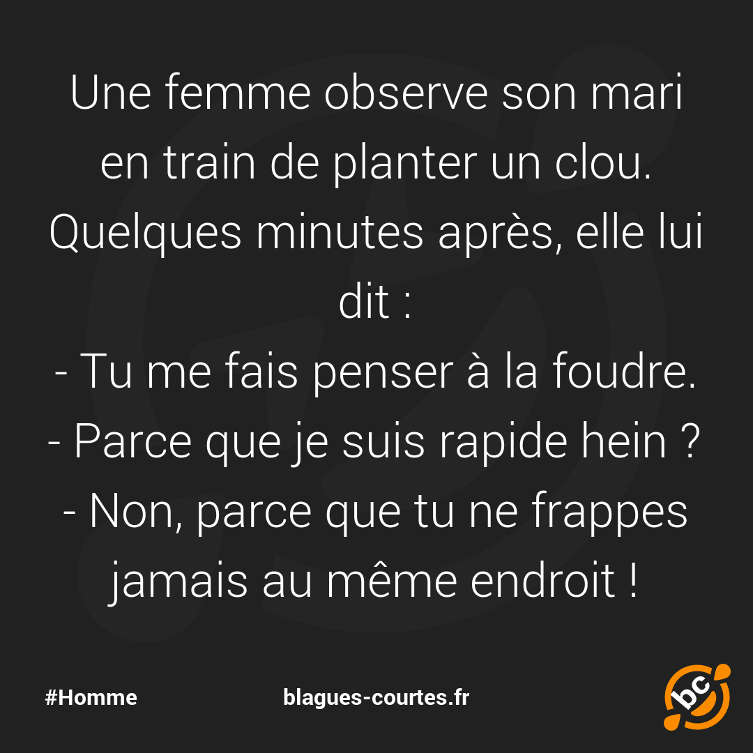 Une femme observe son mari en train de planter un clou. Quelques minutes après, elle lui dit :