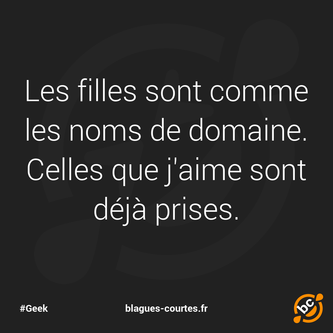 Les filles sont comme les noms de domaine. Celles que j'aime sont déjà prises.