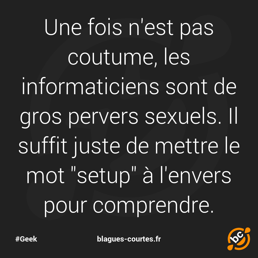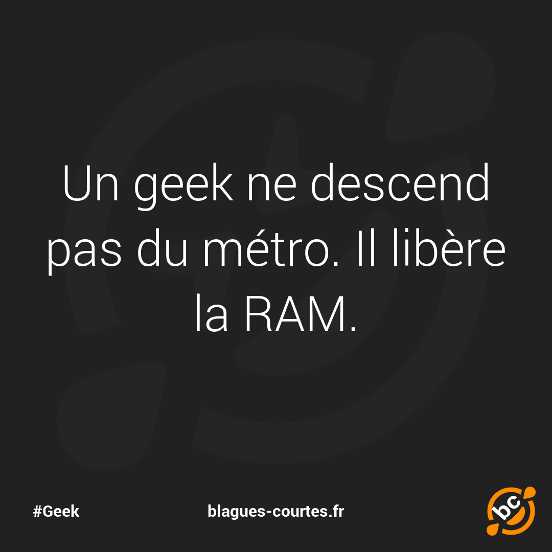 Bienvenue dans notre section dédiée aux blagues courtes pour geeks ! Ici, nous célébrons l'humour qui fait référence à la culture geek, aux technologies, aux jeux vidéo, aux films de science-fiction et à bien d'autres passions geek. Que vous soyez fan de comics, de séries télévisées culte ou de gadgets high-tech, ces blagues sauront vous faire rire et sourire. Plongez dans un univers où l'intelligence et la passion pour la science et la technologie se rencontrent pour créer des situations cocasses et hilarantes. Préparez-vous à découvrir des blagues qui parlent aux geeks de tout horizon et qui ajoutent une touche d'humour à vos passions.