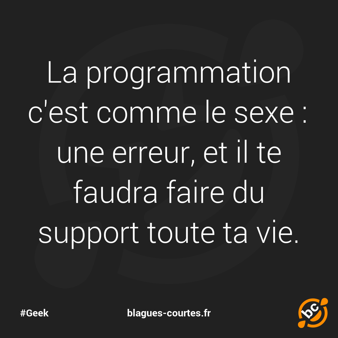 La programmation c'est comme le sexe : une erreur, et il te faudra faire du support toute ta vie.