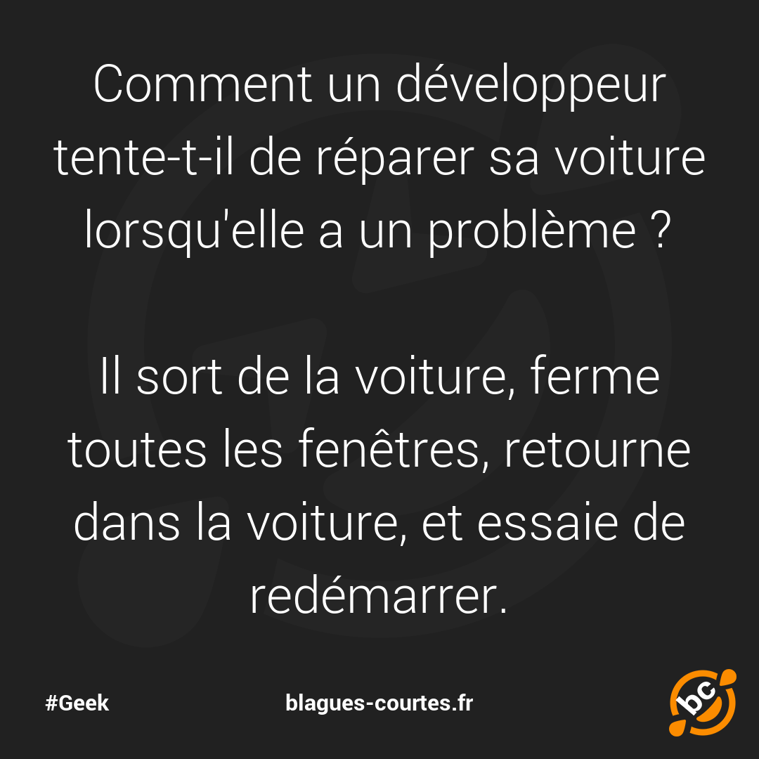 Comment un développeur tente-t-il de réparer sa voiture lorsqu'elle a un problème ?