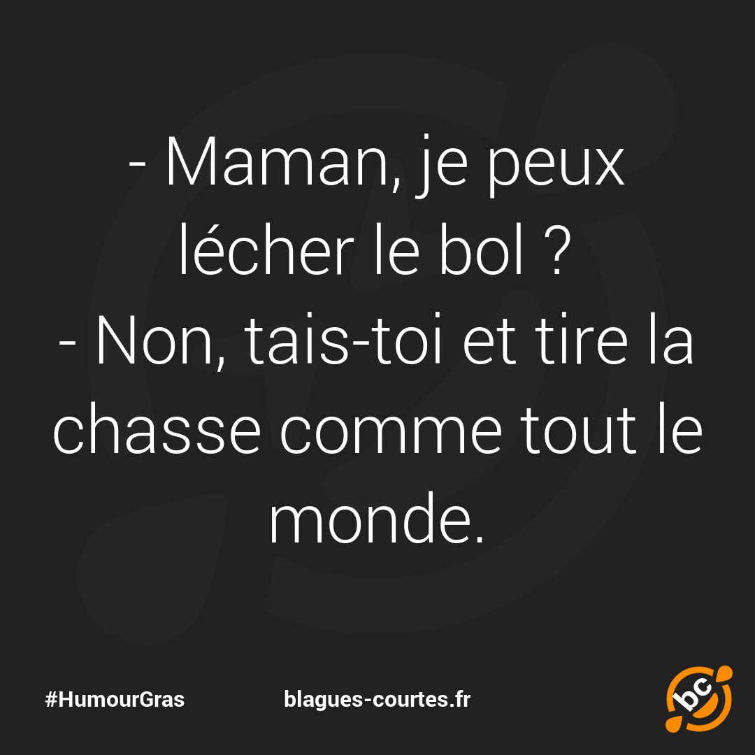 - Bah hier soir, ma mère a dit à mon père : arrête de me limer le cul, il va finir en compote !