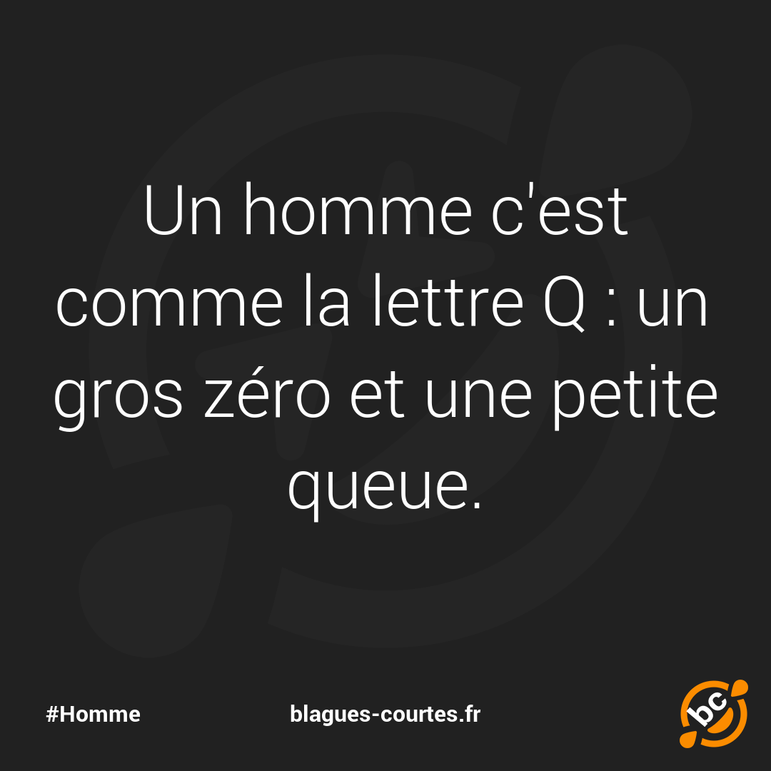 Un homme c'est comme la lettre Q : un gros zéro et une petite queue.