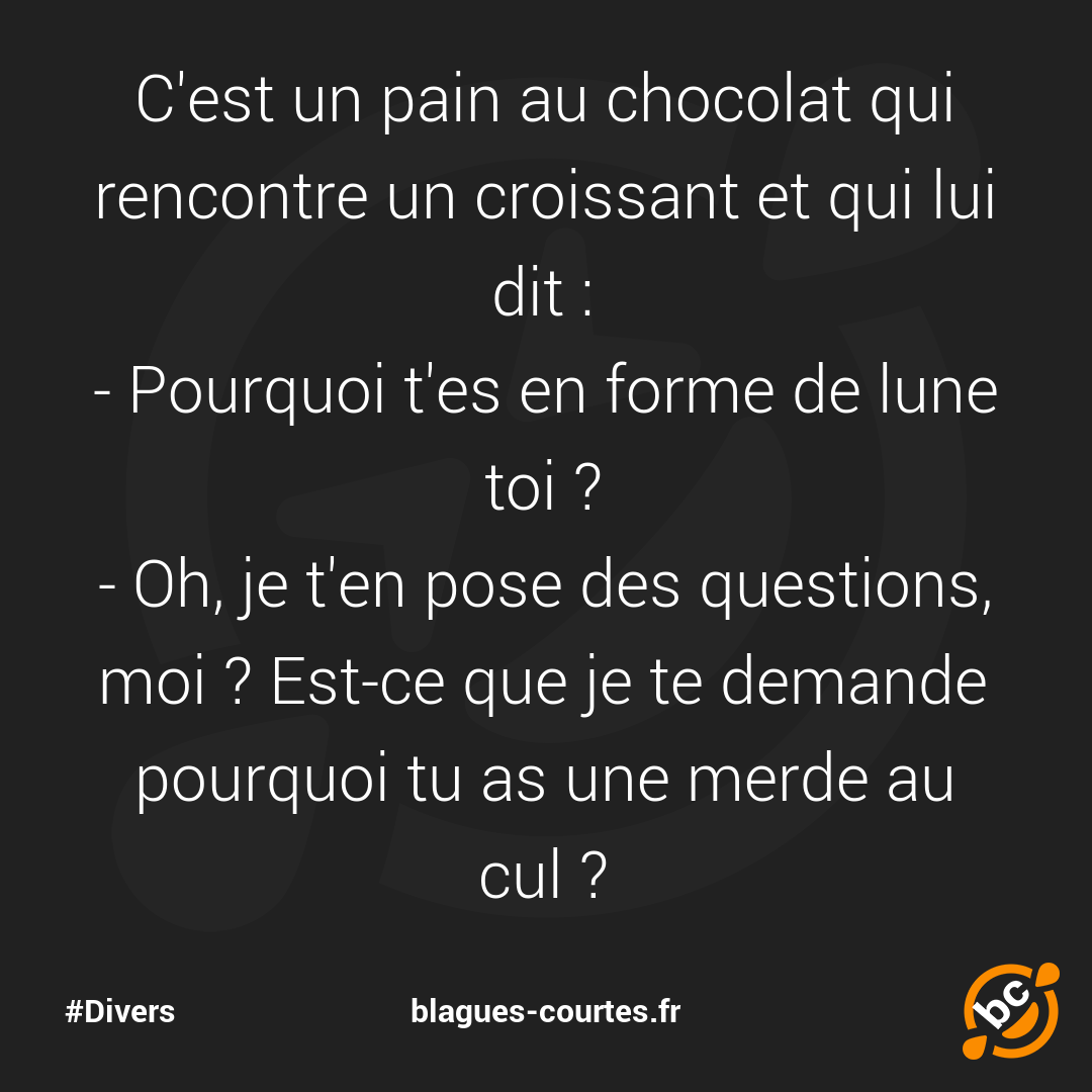 C'est un pain au chocolat qui rencontre un croissant et qui lui dit :