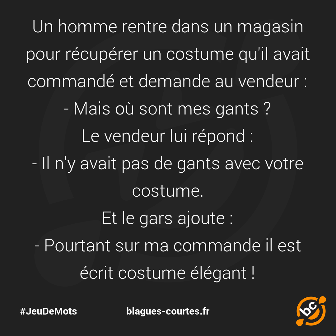 Un homme rentre dans un magasin pour récupérer un costume qu'il avait commandé et demande au vendeur :