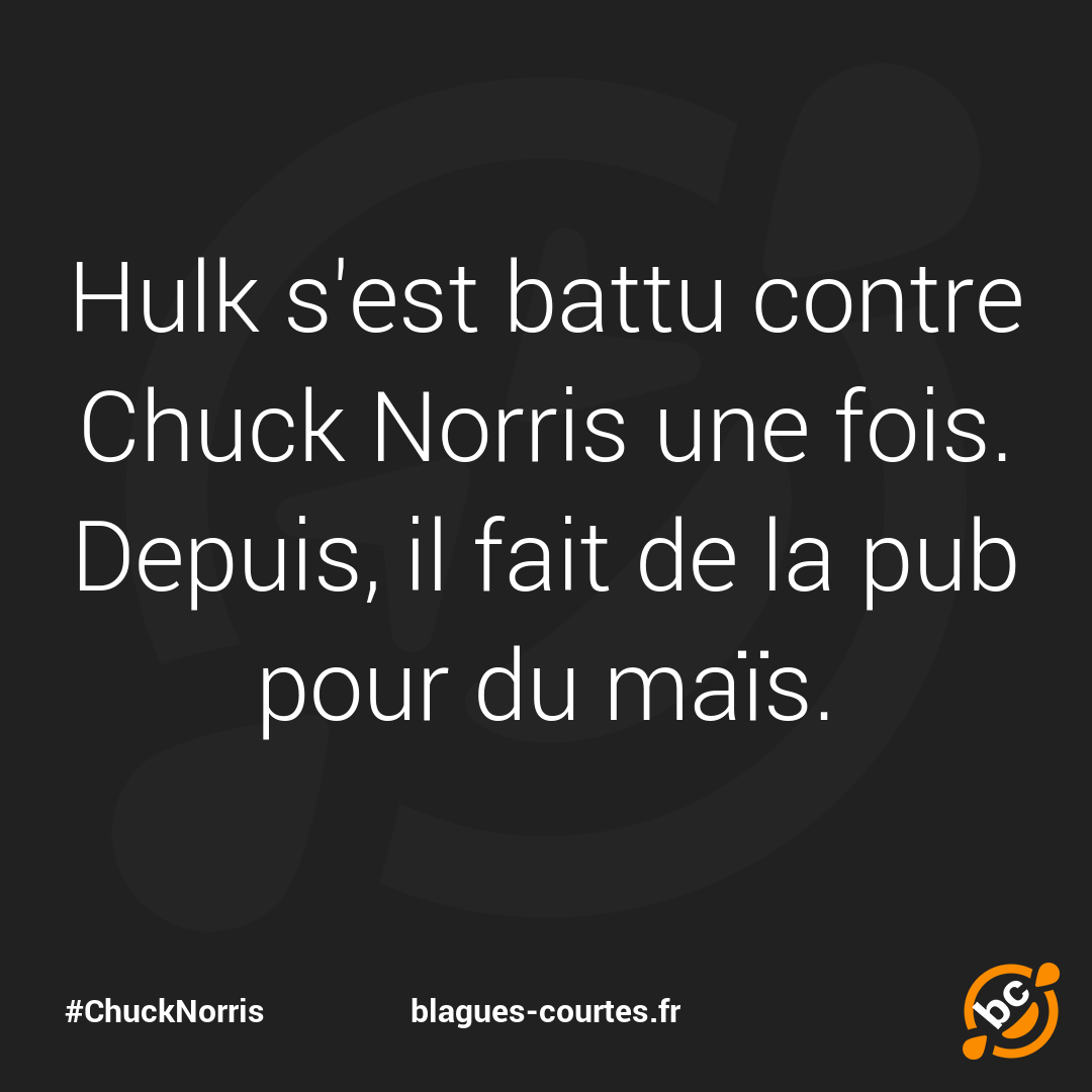 Hulk s'est battu contre Chuck Norris une fois. Depuis, il fait de la pub pour du maïs.