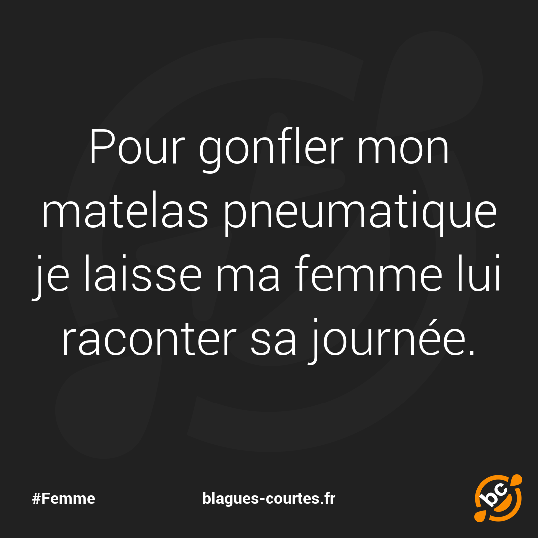 Pour gonfler mon matelas pneumatique je laisse ma femme lui raconter sa journée.