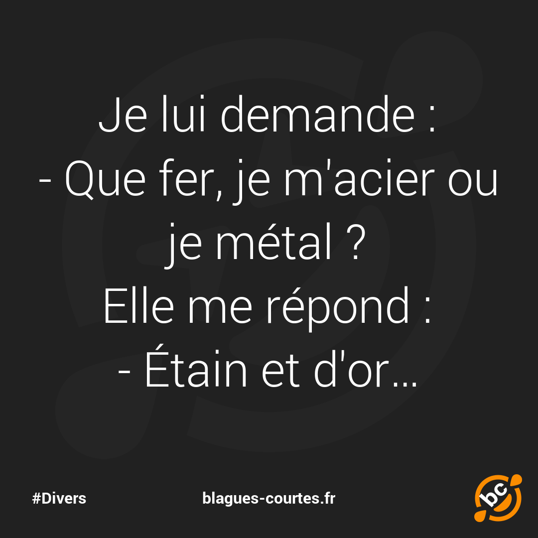 Je lui demande : - Que fer, je m'acier ou je métal ? Elle me répond : - Étain et d'or…