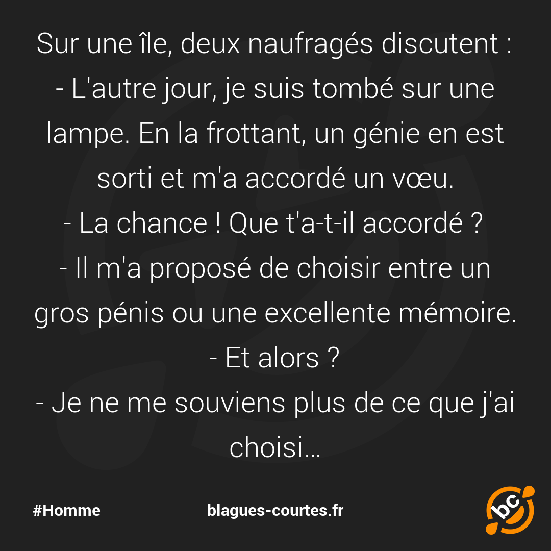 Sur une île, deux naufragés discutent :