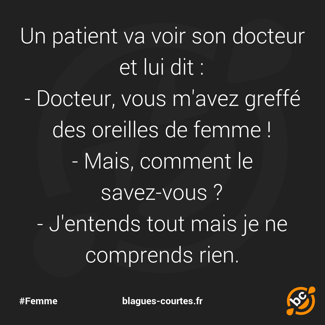 - Docteur, vous m'avez greffé des oreilles de femme !