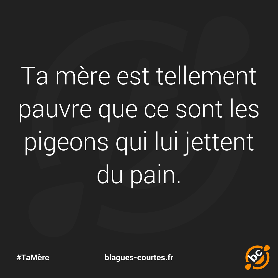 Ta mère est tellement pauvre que ce sont les pigeons qui lui jettent du pain.