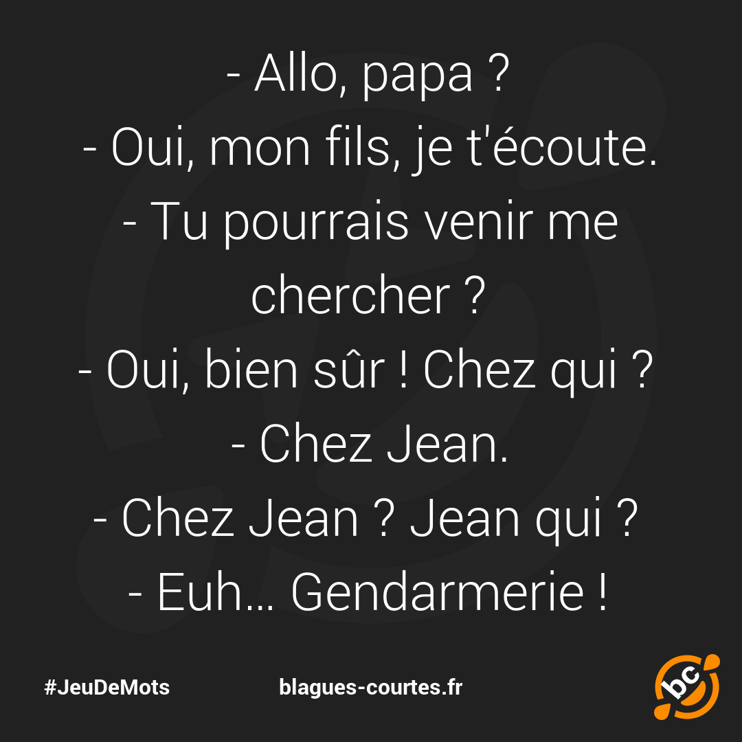 - Très bien. Alors venez en vitesse, s'il vous plaît. Votre fils est bourré et il a chié dans son froc !