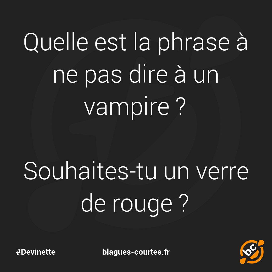 Quelle est la phrase à ne pas dire à un vampire ? Souhaites-tu un verre de rouge ?