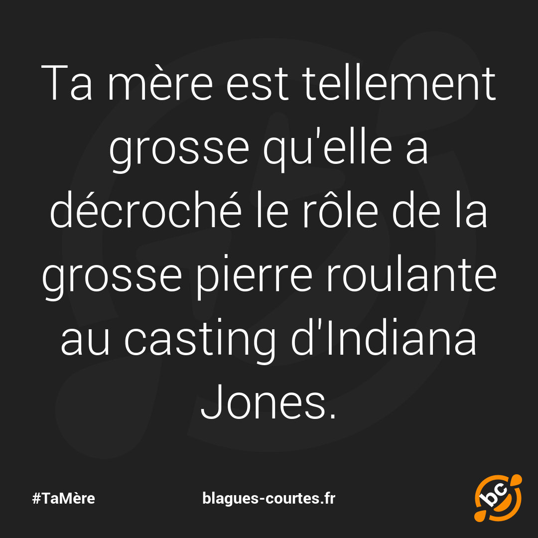 Ta mère est tellement grosse qu'elle a décroché le rôle de la grosse pierre roulante au casting d'Indiana Jones.