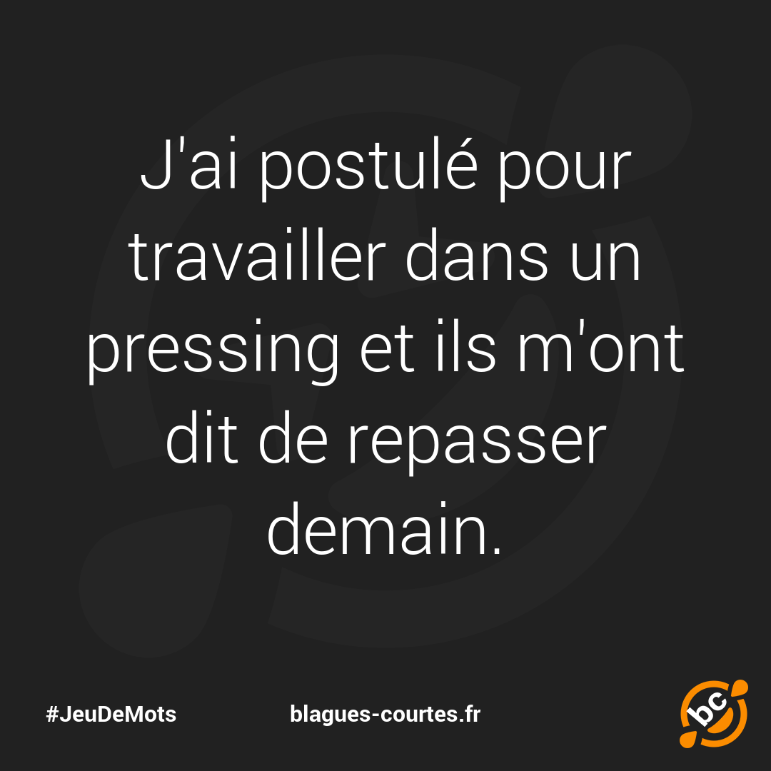 J'ai postulé pour travailler dans un pressing et ils m'ont dit de repasser demain.