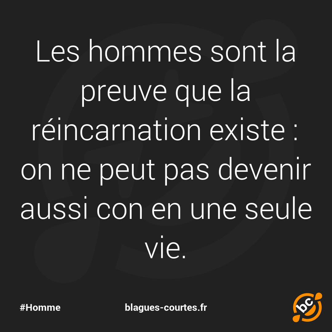 Les hommes sont la preuve que la réincarnation existe : on ne peut pas devenir aussi con en une seule vie.