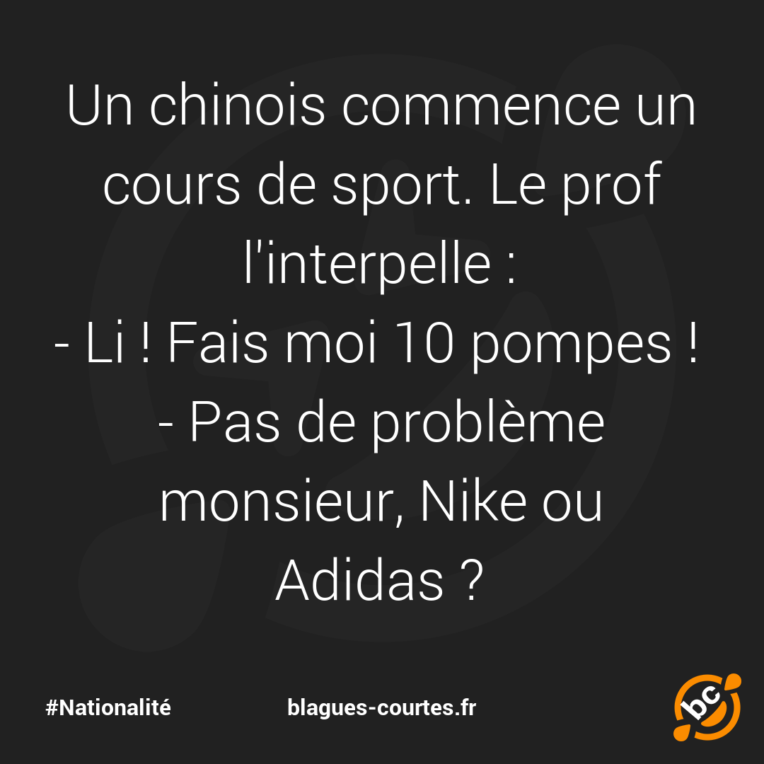 Un chinois commence un cours de sport. Le prof l'interpelle :