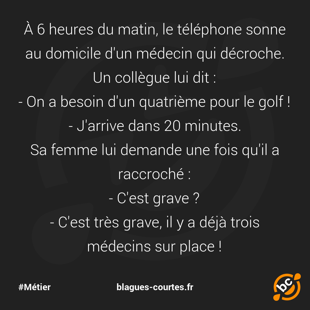 À 6 heures du matin, le téléphone sonne au domicile d'un médecin qui décroche. Un collègue lui dit :