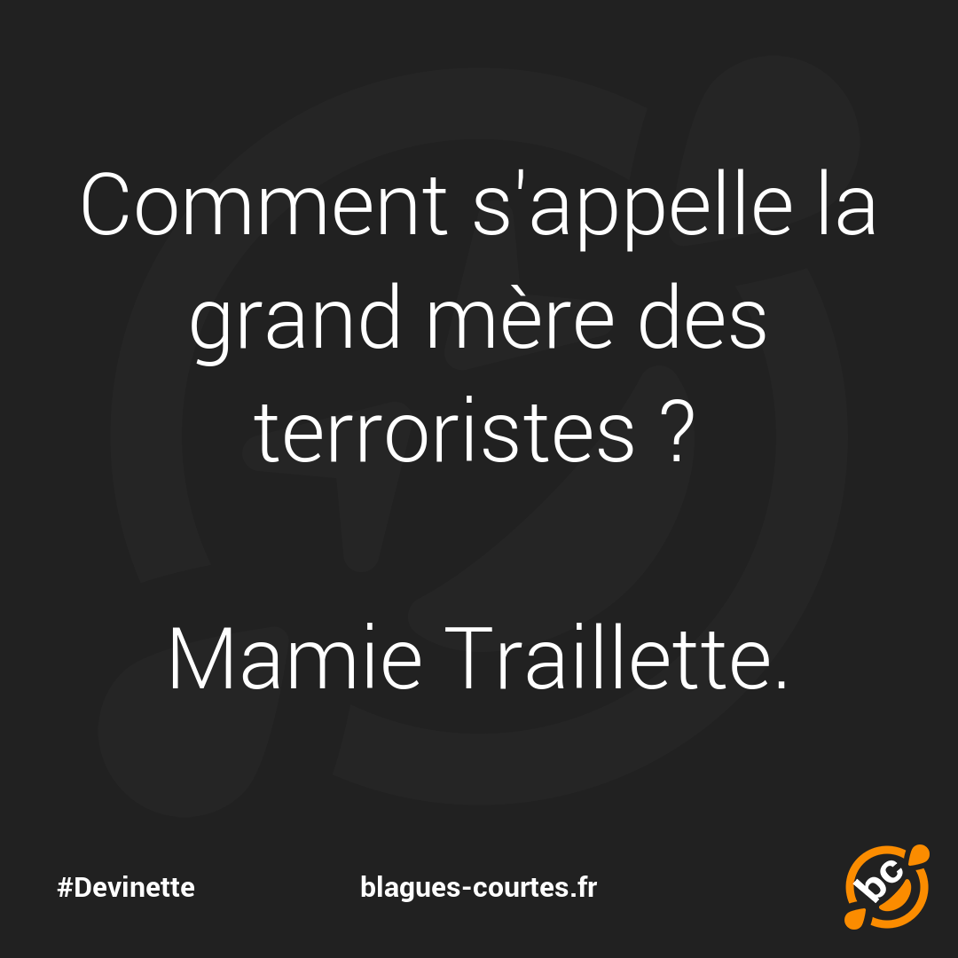Comment s'appelle la grand mère des terroristes ? Mamie Traillette.