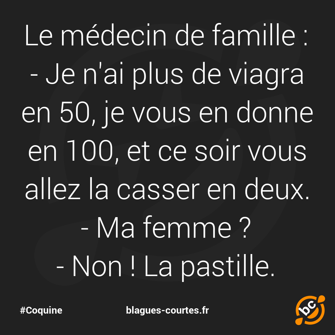- Je n'ai plus de viagra en 50, je vous en donne en 100, et ce soir vous allez la casser en deux.