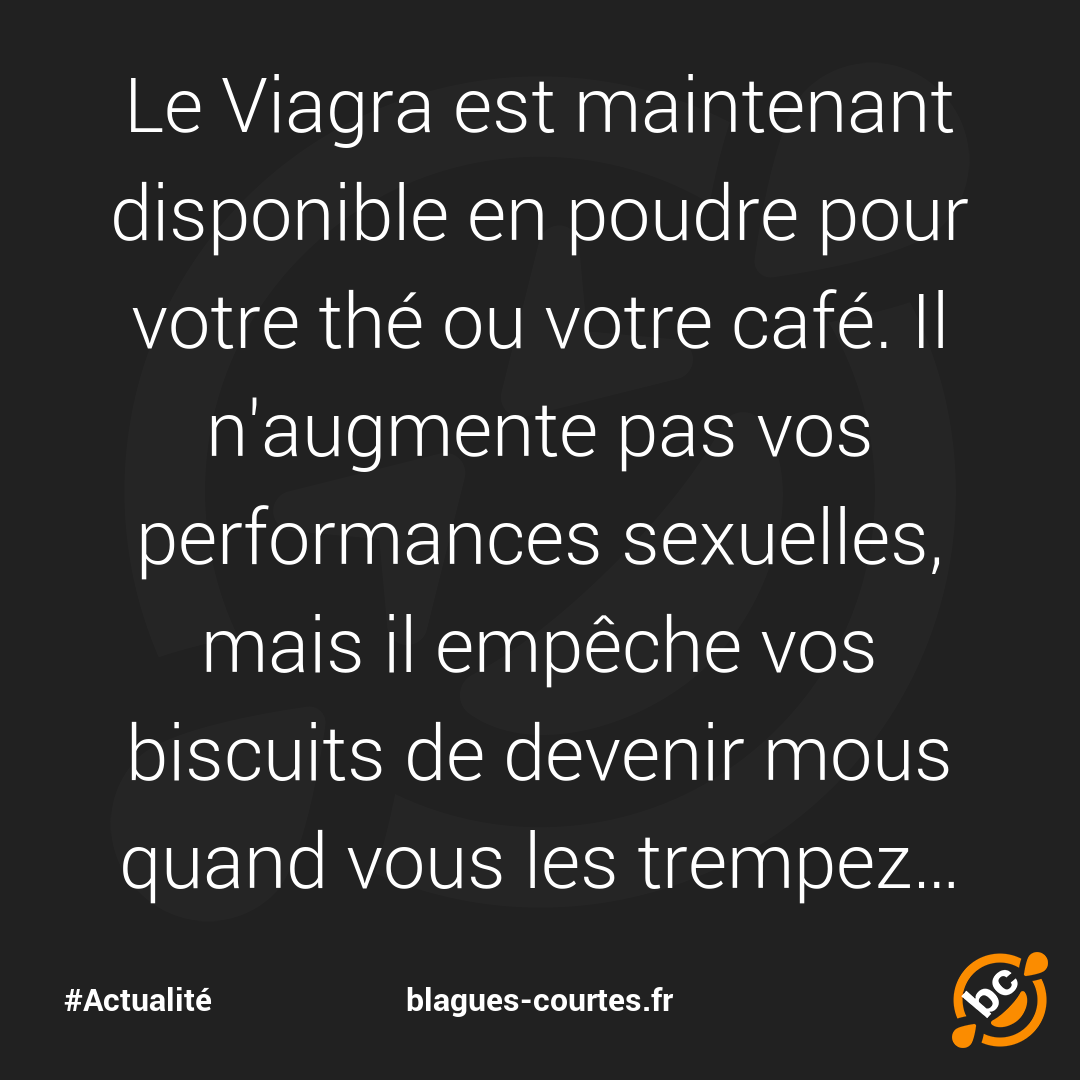 Le Viagra est maintenant disponible en poudre pour votre thé ou votre café. Il n'augmente pas vos performances sexuelles, mais il empêche vos biscuits de devenir mous quand vous les trempez…